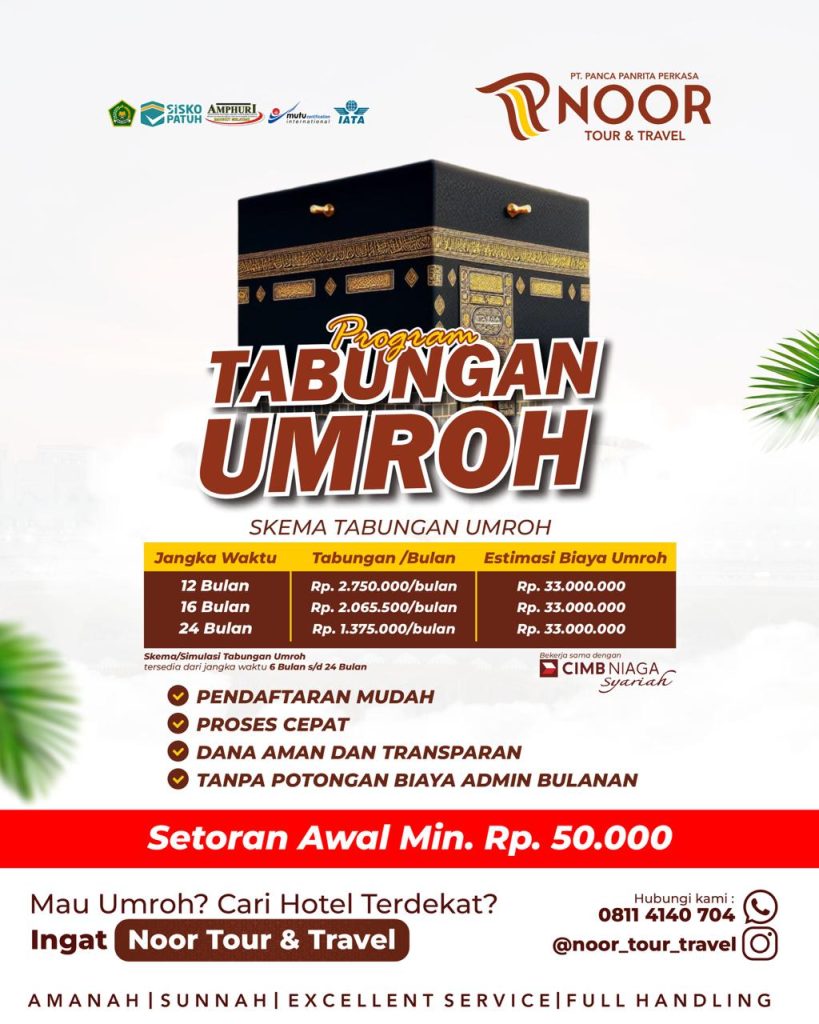 Program tabungan umrah dari Noor Travel dengan berbagai kemudahan dan manfaat. Program ini bekerja sama dengan Bank CIMB Niaga Syariah.